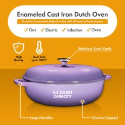 Bruntmor Enameled Cast Iron Dutch Oven with Lid and Stainless Steel Knob – 4.5-Quart