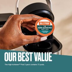Bulletproof The High Achiever Single-Serve Pods, 72 count, Medium-Dark Roast Enhanced Coffee with Lion’s Mane and B Vitamins