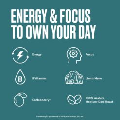 - A rich and bold medium-dark roast that includes a powerhouse blend of B Vitamins, Lion’s Mane and Coffeeberry