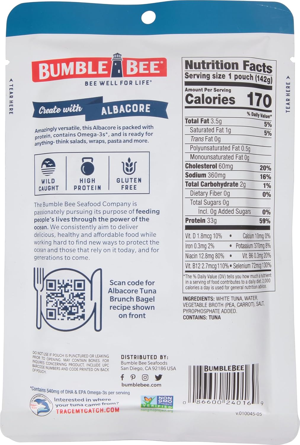 White Tuna, Water, Vegetable Broth (Pea, Carrot), Salt, Pyrophosphate Added.
