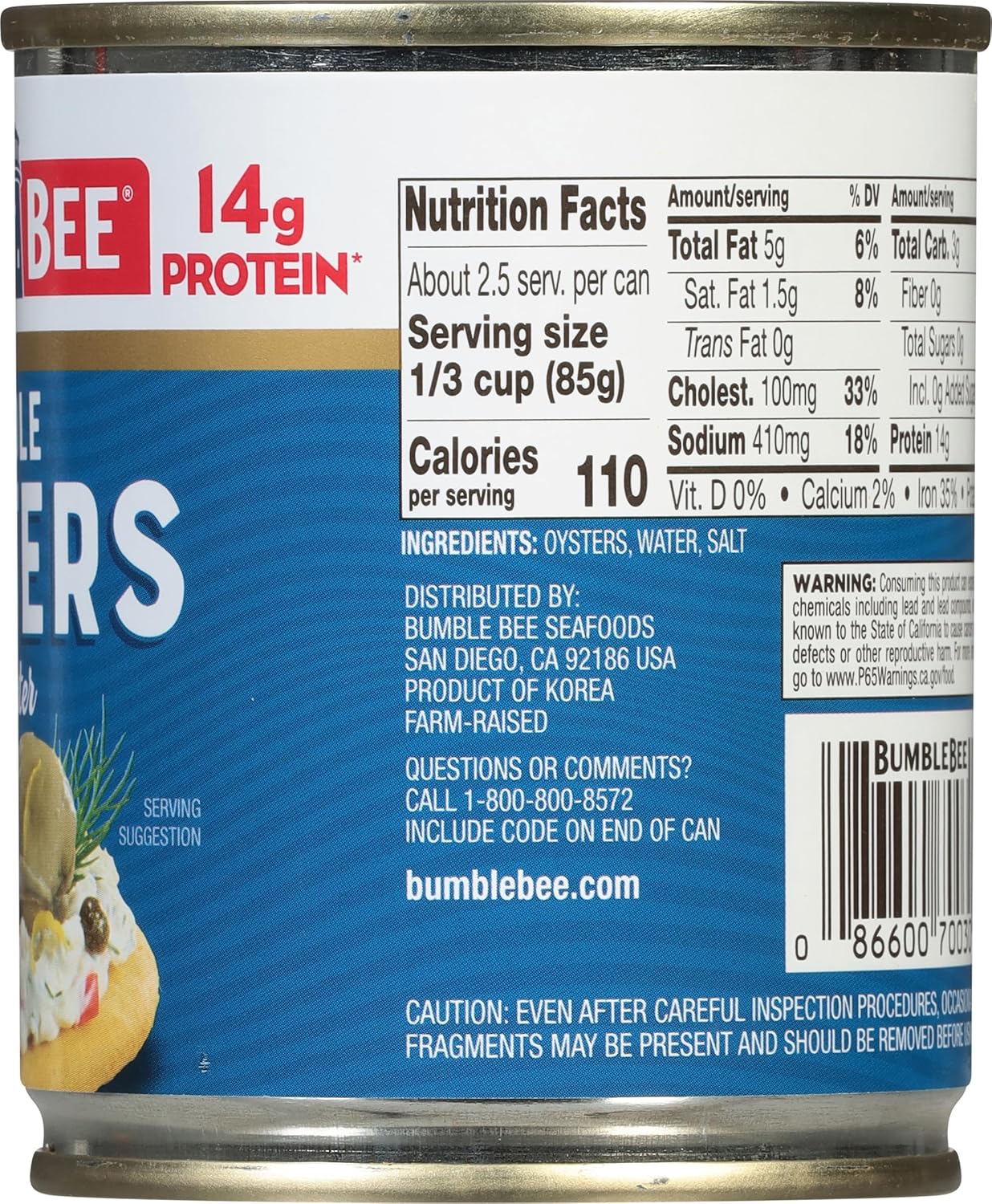 - CONVENIENT & VERSATILE: Enjoy Bumble Bee canned oysters as a great-tasting, protein-packed snack or a quick meal—easily prepare a delicious lunch or dinner with premium Bumble Bee whole oysters