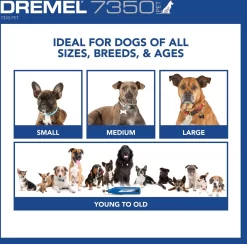 - Dremel 7350-PT Cordless Dog & Cat Rotary Nail Grinder Kit—Wireless design allows you to comfortably trim nails in any position.