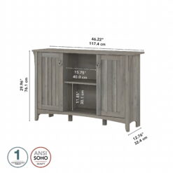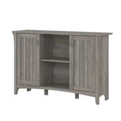 From Bush Furniture’s Salinas Collection, this Accent Storage Cabinet with Doors in Driftwood Gray is perfect for your organization needs. Measuring 46″W x 13″D x 30″H, this piece of furniture offers an ideal storage solution in any home. With 2 concealed storage cabinets and 2 open cubby shelves, you can hide items out of sight and display your favorite decor. Tested and approved to meet or exceed industry standards, this accent cabinet withstands years of use. Cabinet features 3 adjustable shelves, 1 in the center and 1 behind each door. To accommodate bulkier items like hardcover books, binders or photo albums, simply move the adjustable shelves up or down. Inspired by timeless Mission style, doors with vertical wood accents and elegant tumbled pewter hardware add a stylish touch to your bedroom, living area, office space or entryway. At Bush Furniture, we’ve been serving our customers nationally for over 60 years. Our mission is to offer quality, affordable furniture with the best customer service in the business.