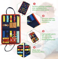 Busy Board for Toddlers Age 1 – 6, Montessori Early Education Activity Toddler Toys for Basic Skills Learning,Dress and Alphabet Spell Cognition, Bag Designed Enlighten Toy for Infants, Boys and Girls