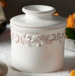 - A TOUCH OF PROVENCAL RUSTIC CHARM – The popular Antique collection of Butter Bell crocks draw inspiration from a French country kitchen, with intricate embossing on each butter keeper that resembles the leaves and crawling vines of a French vineyard, giving the butter crock a well-worn vintage appearance. Conveniently sized for optimal butter freshness, the crock is easy to handle and fits neatly on your countertop.