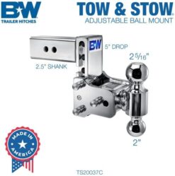 B&W Trailer Hitches Chrome Tow & Stow Adjustable Trailer Hitch Ball Mount – Fits 2.5″ Receiver, Dual Ball (2″ x 2-5/16″), 5″ Drop, 18,000 GTW – TS20037C
