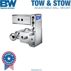 - LIFETIME WARRANTY – The Tow & Stow Adjustable Ball Mount Trailer Hitch is backed by B&W’s Limited Lifetime Warranty. We are confident that our products are made without design or quality defects. However, if you believe that one of our products doesn’t live up to our standards, we would make it right with you, our customer. If your product suffers damage because of an accident or misuse on your part, we will work to get you back on the road with as little cost and hassle to you as possible.