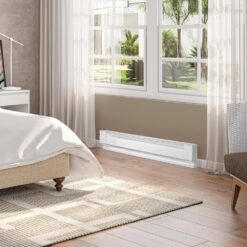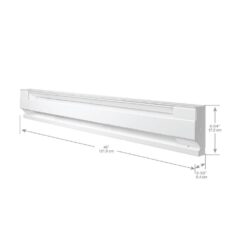 Cadet electric baseboard heaters are a simple and economical way to add quiet, convection heat wherever it’s needed in your home. This white 48-inch heater is an industry-standard size making it ideal for replacement or new construction, and is designed for easy installation with pre-punched mounting marks and wiring at both ends. A thermostat is required for operation (sold separately). Be sure to choose the correct heater size for your room. On the chart below, find the area size you want to heat and then select the corresponding wattage. Proudly made in the USA.