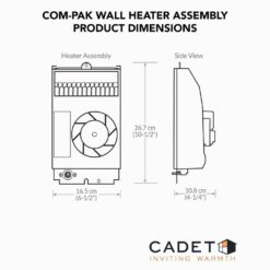 A simple and affordable way to add extra warmth to any living space. The Com-Pak fan-forced in-wall electric heater features a compact size and recess-mount design that requires minimal wall space – ideal for renovations or new construction. This hard-wired electric heater provides quick and efficient heat, yet is quiet enough for any room. This product is an interior replacement heater assembly only. A full heater unit requires a wall can and grille sold separately. Built-in thermostat included.