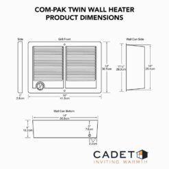 An ideal choice for heating larger rooms with just one heater–two heaters behind a single grille quickly heat a large area and help eliminate drafts and cold spots in your open areas, such as a foyer. A simple and affordable way to add extra warmth to any living space. The Com-Pak Twin fan-forced in-wall electric heater features a recess-mount design that requires minimal wall space – ideal for renovations or new construction. This hard-wired electric heater provides quick and efficient heat. Requires an electronic wall or built-in thermostat for control (sold separately).