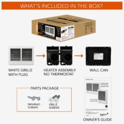 - A complete unit including wall can, heater and white grille; requires thermostat (sold separately)