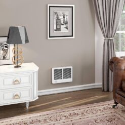 An ideal choice for heating larger rooms with just one heater–two heaters behind a single grille quickly heat a large area and help eliminate drafts and cold spots in your open areas, such as a foyer. A simple and affordable way to add extra warmth to any living space. The Com-Pak Twin fan-forced in-wall electric heater features a recess-mount design that requires minimal wall space – ideal for renovations or new construction. This hard-wired electric heater provides quick and efficient heat. Built-in thermostat included.