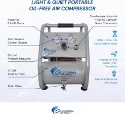California Air Tools CAT-1P1060SP Light & Quiet Portable Air Compressor, Lightweight, Ultra Quiet, Oil-Free, 1 Gallon Steel Tank, .6 HP, 56 dBA Noise Level