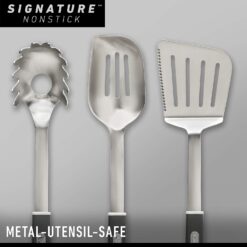 Calphalon Signature Nonstick Cookware features 3 nonstick layers which create a durable, longer-lasting nonstick surface that is metal-utensil-safe.