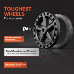 - Effortless Transport: Haul your waste with ease with no-flat wheels built for any terrain, an oversized handle for easy maneuvering, & a steel tow adapter for effortless towing behind a truck or golf cart