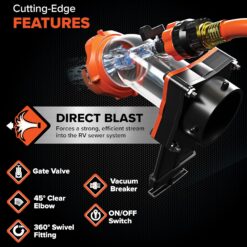 Camco Rhino Blaster RV Tank Rinser with Gate Valve & Backflow Preventer RV Accessories for Waste Tank Cleaning – Essential Camper Supplies for Odor Control and Sensor Maintenance – (39086)