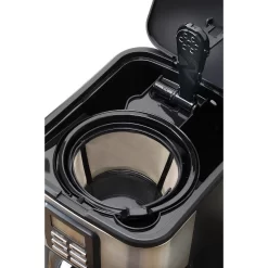 Compact and stylish, the SG220 is a full-sized 12-cup coffee maker designed to save you space on the countertop. An easy-to-read external water level indicator and fully programmable LCD makes brewing rich, hot coffee a snap. The reusable GoldTone filter and glass carafe with brew-though lid and drip-free pouring spout are dishwasher safe, making clean-up a breeze. The optional strength setting extends the brew time for added aroma.