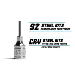 - Largest 1/2 in. drive hex bits (9/16 in. / 14 mm and above) are forged with custom chrome vanadium steel, giving these large bits balanced tensile strength for optimal performance