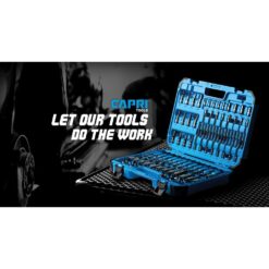 The Capri Tools 88-Piece Master Bit Socket Set is a complete collection of most frequently used bit sockets. We use premium S2 steel tempered with our proprietary heat treatment process to make these bits (other than 1/2 in. drive hex bits 9/16 in. / 14 mm and above). They are exceptionally durable and strong, withstand high torque and do not twist, protecting both the bit and the fastener. The 1/2 in. drive hex bits 9/16 in. / 14 mm and above are forged with our custom Chrome Vanadium steel, giving them a balance tensile strength for optimal performance. The sockets are constructed with premium Chrome Vanadium steel and plated with our own chrome protective plating – durable and resist corrosion. We made all of our hex bits true-to-size for their entire length, letting you use the full length of the hex bit. Chamfered end ensures a smooth fit onto fasteners. 88-piece set includes (13) external star sockets, (15) star bit sockets, (15) long star bit sockets, (16) hex bit sockets in metric, (7) long hex bit sockets in metric, (15) hex bit sockets in SAE, (7) long hex bit sockets in SAE. Meets and exceeds ASME B107.110 standards.