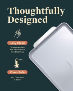 - BUILT TO LAST: Our Baking Sheets can withstand oven temperatures up to 550ºF. After baking, simply hand wash your sheets and place them back in their organizers to ensure they stay in perfect condition.