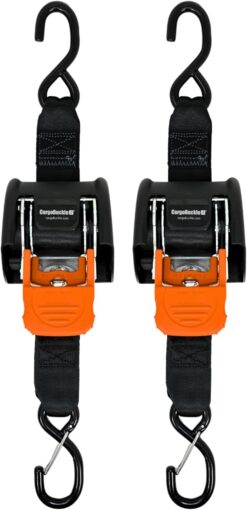 CargoBuckle G3 2-Inch Retractable Ratchet Tie-Down System – Heavy Duty Straps with Dual S-Hooks, 2,500 lbs Break Strength, 2-Pack