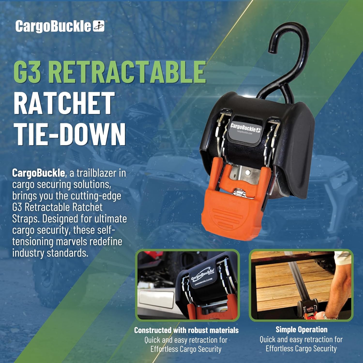 - AWARD-WINNING DESIGN – The CargoBuckle G3 Retractable Ratchet Tie-Down Anti-corrosive Construction has won multiple awards for its innovative design and functionality. Trust in this top-rated product to keep your cargo safe during any journey.
