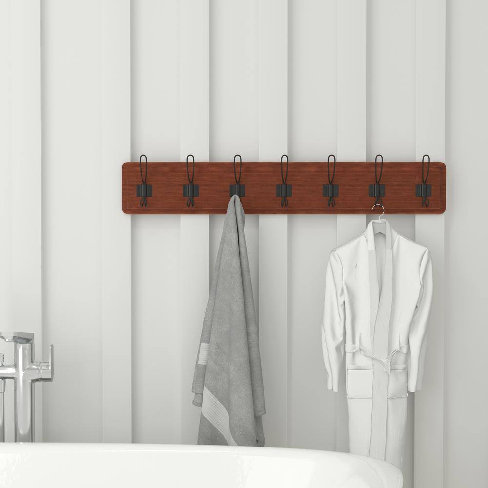 - Rustic 34″ Wall Mount Storage Rack with 7 Hanging Hooks