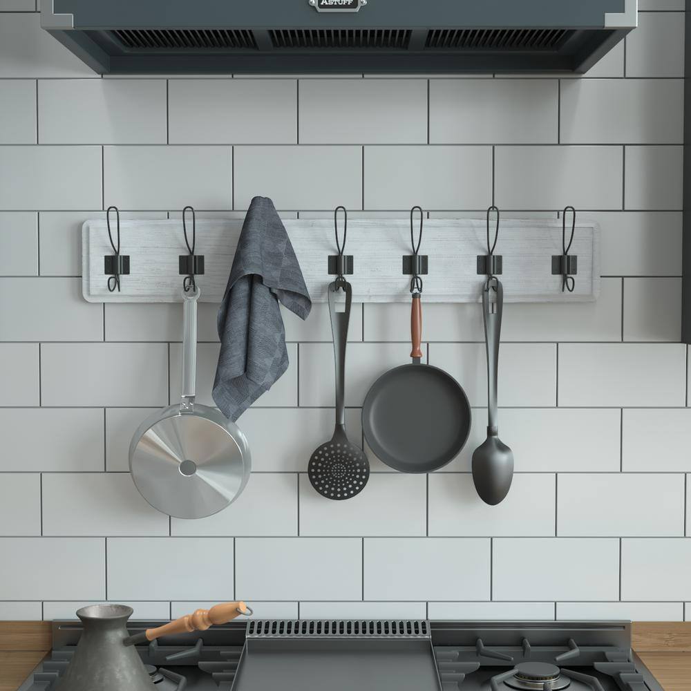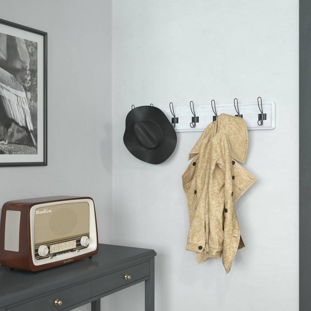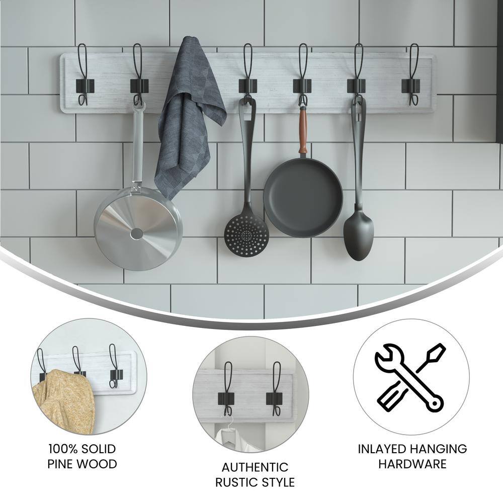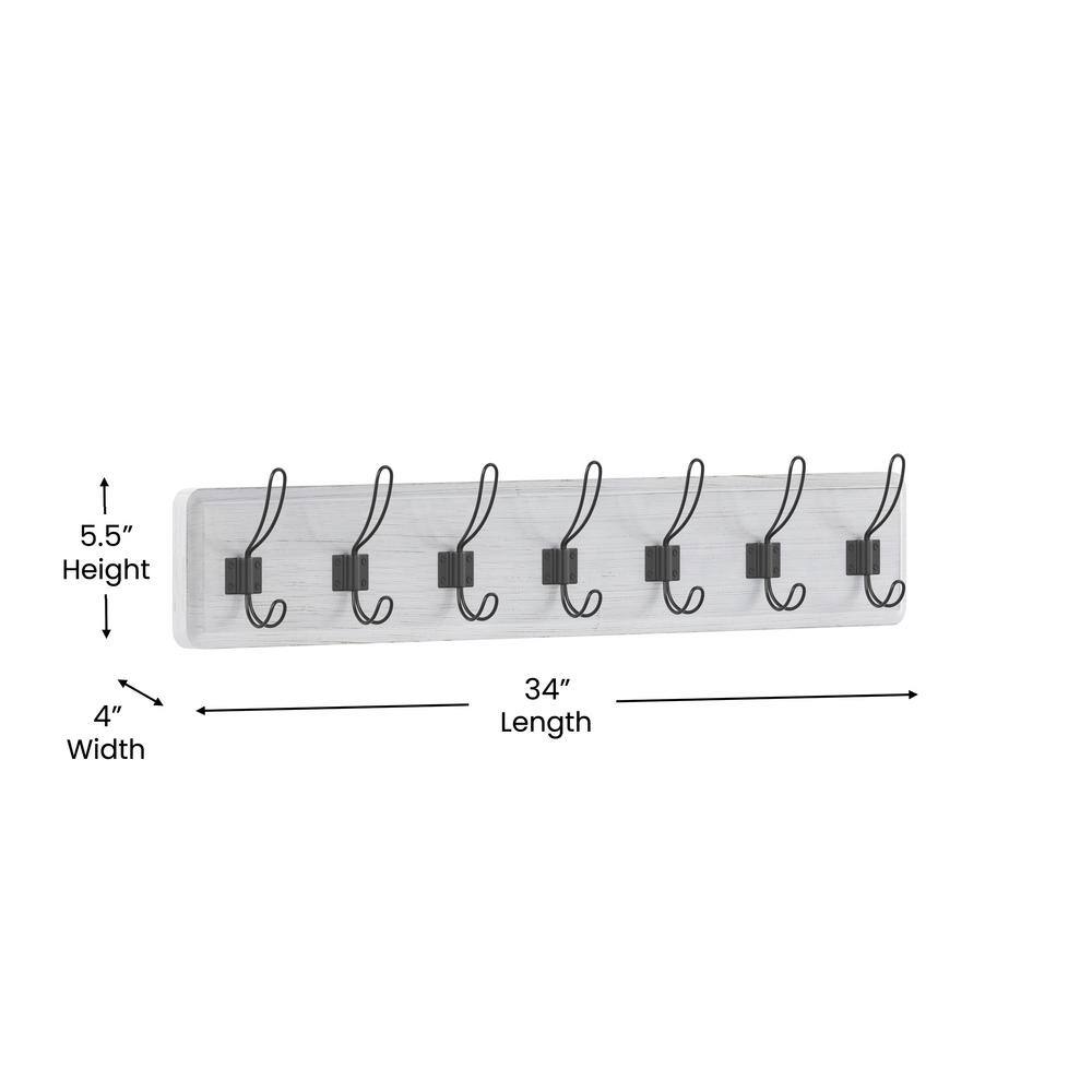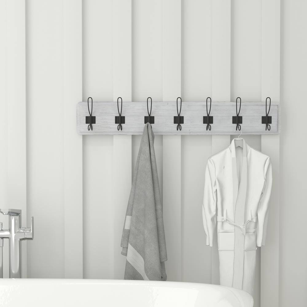 - Rustic 34″ Wall Mount Storage Rack with 7 Hanging Hooks