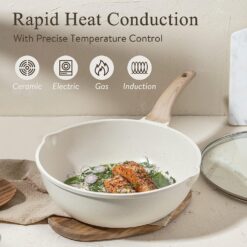- Eco-friendly White Granite – A top level, harder nonstick granite material with 10x Ultra Non-stick performance,SGS & EUROFIN approved, PFOS/PFOA free, our cookware ensures your daily cooking is always safer and healthier.