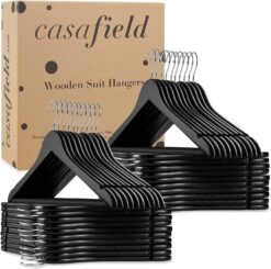 - Maximize your closet space: Completely transform your closet into an organized and beautiful space with these wooden suit hangers from Casafield. Our hangers are ideal for suits, coats, dresses, and more. With strong construction and features like shoulder notches and non-slip pant bar, these versatile hangers can be used for all your clothing! Easily hang a heavy suit jacket and a matching pair of slacks on the same hanger to keep all your outfits in their place.