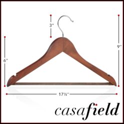- Maximize your closet space: Completely transform your closet into an organized and beautiful space with these wooden suit hangers from Casafield. Our hangers are ideal for suits, coats, dresses, and more. With strong construction and features like shoulder notches and non-slip pant bar, these versatile hangers can be used for all your clothing! Easily hang a heavy suit jacket and a matching pair of slacks on the same hanger to keep all your outfits in their place.