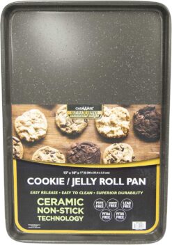 - Silver Granite Ceramic Surface on a 0.8mm baking pan provides long lasting durability and scratch resistance. Heat Tolerant to 450 F. No peel or blistering at high temperatures. Ceramic Non-Stick Technology Provide a Greater Baking Experience. Very Easy to Clean. Just wipe or scrub softly and the food slides off easily.