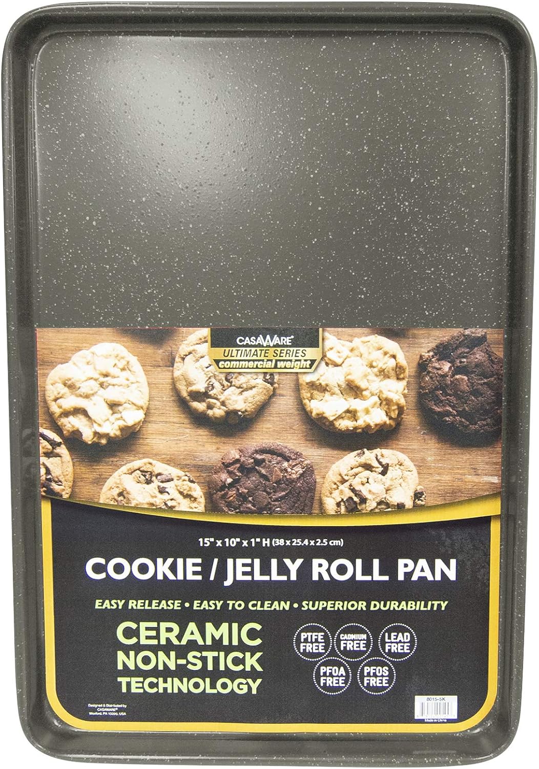 casaWare 3pc Ultimate Commercial Weight Cookie Sheet Set, Two 15 x 10-Inch Pans, One 13 x 9-Inch-Inch Pan (Silver Granite)