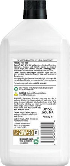Castrol 06102 GO! 20W-50 4T Motorcycle Oil – 1 Quart Bottle, (Pack of 6)