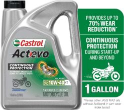 Castrol Actevo 10W-40 4T Synthetic Blend Motorcycle Oil, 1 Gallon, Pack of 3