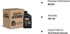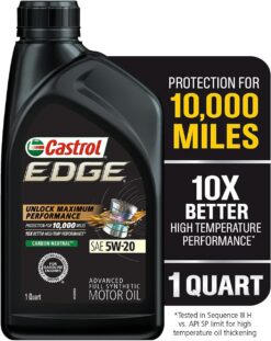 Castrol Edge 5W-20 Advanced Full Synthetic Motor Oil, 1 Quart, Pack of 6
