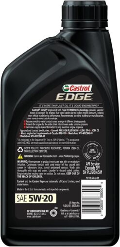Castrol EDGE is Castrol’s most advanced engine oil. It is a premium full synthetic oil that is designed for consumers who demand the best performance from their cars. Castrol EDGE is recommended by leading car manufacturers. Castrol EDGE is engineered with fluid titanium technology that physically changes the way the oil behaves under pressure. As a result of increased demand for performance and fuel economy, pressures in today’s engines have almost doubled over the last three decades. Greater pressure means more stress for the oil and the potential for more friction. As metal to metal contact increases, it causes wear and reduces performance. Underneath the hood, the pressure can reach 10 tons per square centimeter. That’s like five cars resting on a high heel relying only on a micro thin layer of oil for protection. So you need a strong oil to reduce friction, and to help increase horsepower and fuel economy. To combat the increased pressures faced in today’s engines, Castrol EDGE is engineered with fluid titanium technology that physically changes the way the oil behaves under pressure. Castrol’s patented titanium technology provides documented performance in friction reduction, anti-wear and deposit control protection. The titanium-based technology ensures performance and strength.
