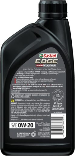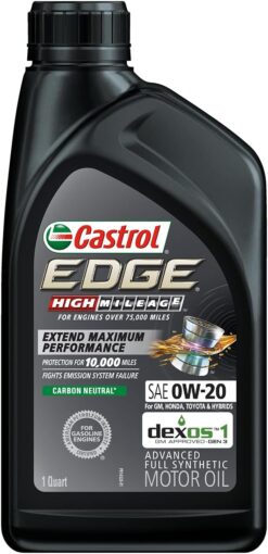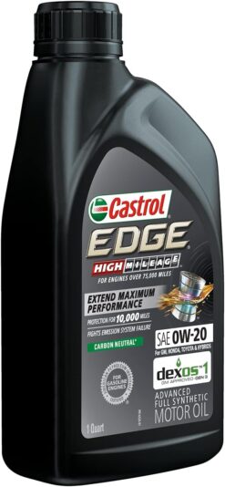 Castrol EDGE High Mileage 0W-20 Advanced Full Synthetic Motor Oil, 1 Quart, Pack of 6