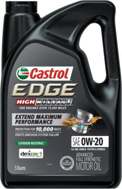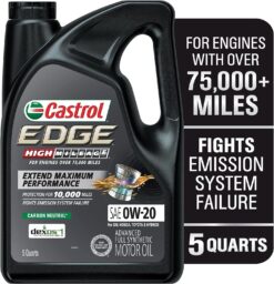 Castrol Edge High Mileage 0W-20 Advanced Full Synthetic Motor Oil, 5 Quarts, Pack of 3