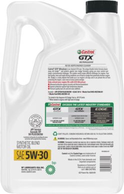 Castrol GTX Ultraclean 5W-30 Synthetic Blend Motor Oil, 5 Quarts, Pack of 3