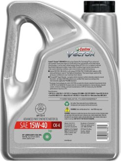 Castrol VECTON 15W-40 CK-4 with unique SYSTEM PRO TECHNOLOGYâ„¢ is an advanced part-synthetic heavy-duty engine oil. Conforming to the requirements of the latest engine oil specifications, it can be used in diesel engines where API CK-4 or CJ-4 and below is required. This oil is specifically engineered to deliver longer oil life, which can enable longer service intervals even under severe operating conditions.