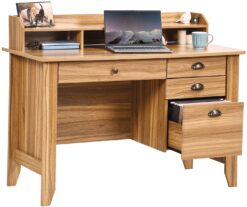 Tons of Storage: Feature a file drawer (accommodates letter-size hanging files) on the bottom, two shallow drawers on the right, and a center drawer. This is perfect for those with a lot of paperwork or knickknacks. A small hutch is a perfect depth for even bulkier monitors and equipment. Cubby areas can keep decorative in a visible sight while saving space.
