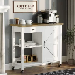 Catrimown Farmhouse Kitchen Island Cart with Storage, Rolling Kitchen Cart on Wheels, Microwave Stand, Coffee Cart, White