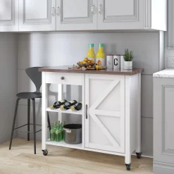 - Features: Farmhouse Barn Door, Adjustable Shelf, Mobile Wheels