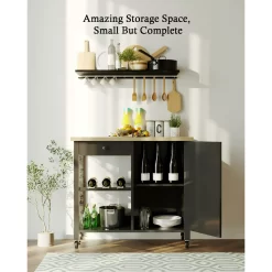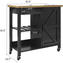 The farmhouse rolling kitchen island is our unique feature. A gospel for country-style furniture lovers. Black is a modern and fashionable color.