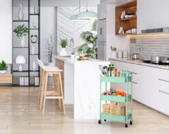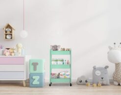 CAXXA 3-Tier Rolling Metal Storage Organizer – Mobile Utility Cart, Kitchen Cart with Caster Wheels (Aqua Green)