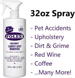 - Instant Carpet Spot Remover Kit – Includes 32oz FOLEX Instant Carpet Spot Remover Spray Bottle + Cemko Cleaning Cloth