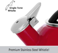 Chantal commemorated its 40th year in business with this fashionable teakettle. This kettle’s ergonomic stay-cool handle fits comfortably in the hand for easy pouring while the wide flat bottom facilitates rapid boiling. Our easy-clean, high quality enamel, which is guaranteed not to fade. Enamel-on-Steel teakettles are made with magnetic carbon steel which means they will work on all cooktops INCLUDING magnetic induction. Enamel is also easy to clean and the color will not fade over time. 2 qt. functional capacity. Limited warranty. May require hand protection when using a gas or professional stove.