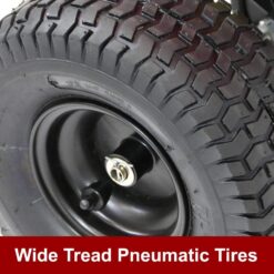 - 14-INCH PNUEMATIC TIRES: designed to handle uneven ground, acreage, and lawns
