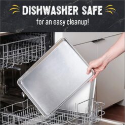 - Dishwasher Safe: Spend more time over the stove and less time over the sink! When you’re all done with our baking sheets for oven use, just pop them in the dishwasher for convenient cleaning.